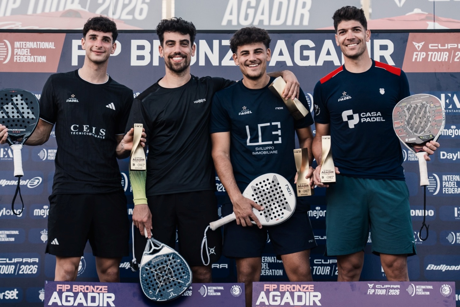 Il successo del poker arriva dal Marocco, nel primo storico evento del Cupra FIP Tour del paese africano, giocato al Royal Tenis Club di Agadir. Un torneo ben frequentato nel quale gli italiani sono stati i grandi protagonisti, con tre dei nostri in finale e un quarto – Simone Cremona – fermato nei quarti proprio da Abbate e Montiel, principali indiziati per il titolo alla vigilia (malgrado la testa di serie numero 4) e capaci di tradurre sul campo la propria superiorità. In semifinale Flavio e Alvaro, già vincitori di tre titoli FIP nel 2025, hanno sconfitto con un doppio 6-4 il belga Clement Geens e il francese Dylan Guichard, mentre in finale hanno avuto la meglio per 6-3 2-6 7-5 contro l’altro azzurro Marco Cassetta e il suo nuovo compagno Mario Huete, al termine di una battaglia lunga oltre due ore.