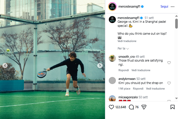 È capitato più volte di vedere Antonelli in campo alla vigilia dei gran premi, anche in occasioni illustri, come all’evento Premier Padel organizzato lo scorso anno in occasione del GP di Doha, insieme a tanti colleghi che non hanno perso la chance di mettersi in gioco anche con la pala. Si parla tanto dei calciatori che impazziscono per la pala, ma vale lo stesso per tanti piloti: basta chiedere al quattro volte campione del mondo Max Verstappen, che dopo la F1 mette il padel in cima alle proprie priorità sportive.